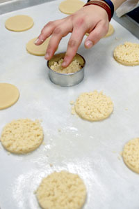 Andrea beachner begins forming toppers for the ice cream sandwiches that will be served with the Chef’s Table dinner at Flathead Valley Community College. |