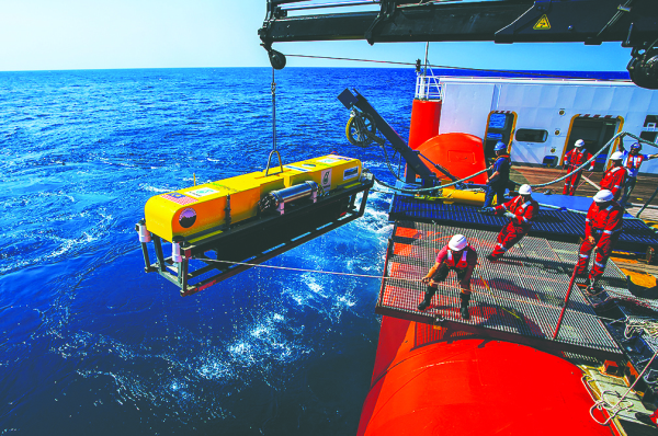 Crews on board the GO Phoenix, a search vessel scouring the Indian Ocean in search of the missing Malaysian Airlines Flight, recover a highly specialized deep sea survey sonar device. Whitefish-based Hydrospheric Solutions LLC is among the crew searching for the flight, which disappeared in March. Courtesy Photo