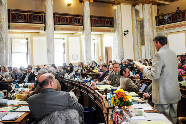 Rep. Steve Lavin addresses fellow members of the House during the 63rd Legislative Assembly in Helena. – Lido Vizzutti | Flathead Beacon