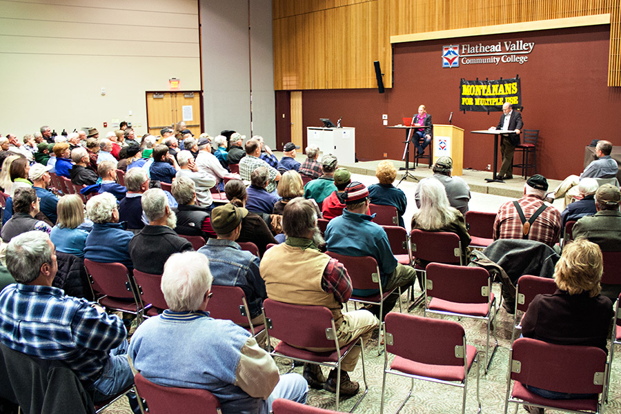 State Sen. Jennifer Fielder and Rep. Ed Lieser debate the future of public lands at Flathead Valley Community College during an event hosted by Montanan’s For Multiple Use on Dec. 11., 2014. Justin Franz | Flathead Beacon