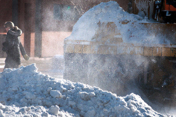 snow By Greg Lindstrom December 30, 2014 Crews remove snow from the streets in downtown Kalispell on Dec. 30, 2014. Greg Lindstrom | Flathead Beacon
