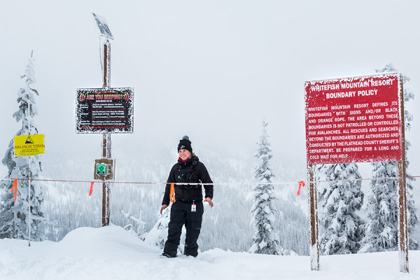 Patroller Kate Atha at the beacon checker located at the top of Flower Pt. at Whitefish Mountain Resort. (Craig Moore/GlacierWorld.com)
