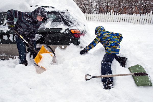 Snow By Greg Lindstrom January 5, 2015 Robbie Bush and his brother Wyatt dig a car out of the snow in Kalispell on Jan. 5, 2015. Greg Lindstrom | Flathead Beacon