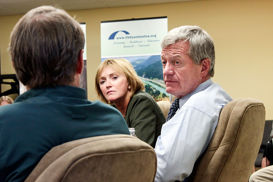 Medicare and Medicaid Services Administrator Marilyn Tavenner, center, and former Sen. Max Baucus listen to Dr. Brad Black of the CARD Clinic on a visit to Libby. Beacon File Photo