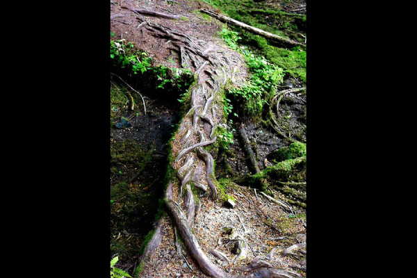 A natural bridge of roots at the Ross Creek Cedars near Libby was removed with a chainsaw, according to forest managers. Courtesy photo