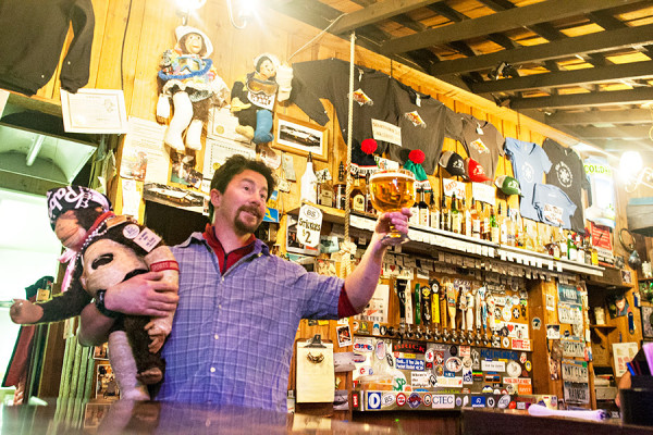 Ski patroller Ryan Friel wins the weekly Frabert award at the Bierstube at Whitefish Mountain Resort on Jan. 21, 2015. Greg Lindstrom | Flathead Beacon