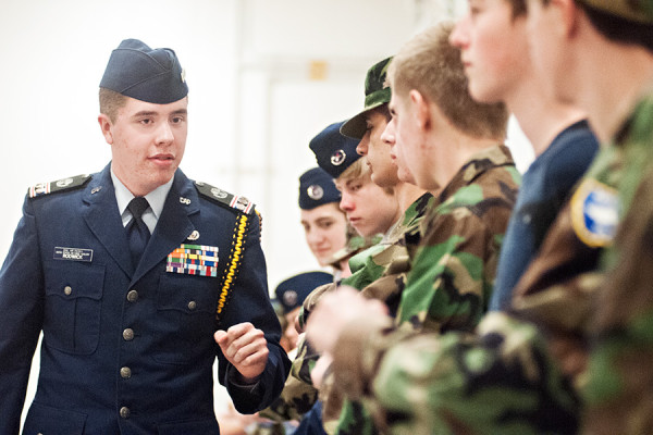 Cadet Capt. Christopher Rodwick addresses Civil Air Patrol cadets before the Command Change Ceremony on Jan. 29, 2015. Greg Lindstrom | Flathead Beacon