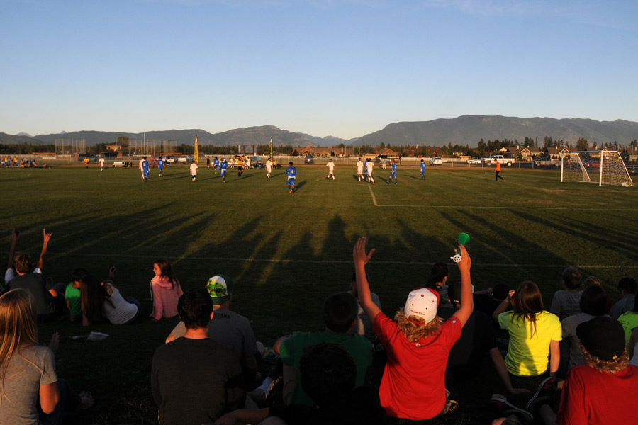 Students, parents and fans cheer for the Bulldogs at the end of the their 5-0 win over Bigfork at Smith Fields in Whitefish. – Lido Vizzutti | Flathead Beacon