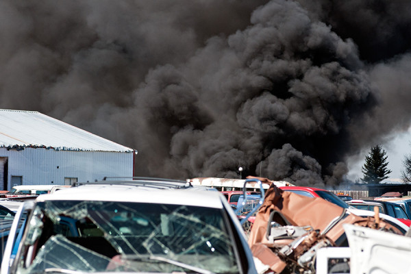 Firefighters from across the Flathead Valley respond to the massive fire at A1 Auto Enterprises near Somers on April 17, 2015. Greg Lindstrom | Flathead Beacon