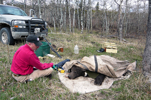 Chris Servheen sits with a bear as she wakes up in the field. Courtesy photo By Dillon Tabish May 3, 2016