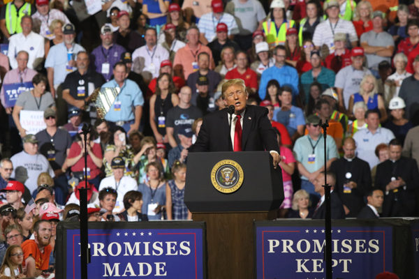 President Donald Trump addresses a crowd of supporters at a July 5 rally at ExpoPark in Great Falls. Tristan Scott | Flathead Beacon