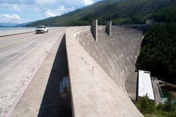 13247 c Hungry Horse Dam By Micah Drew May 21, 2021 Traffic crosses the road across the Hungry Horse Dam. Lido Vizzutti | Flathead Beacon