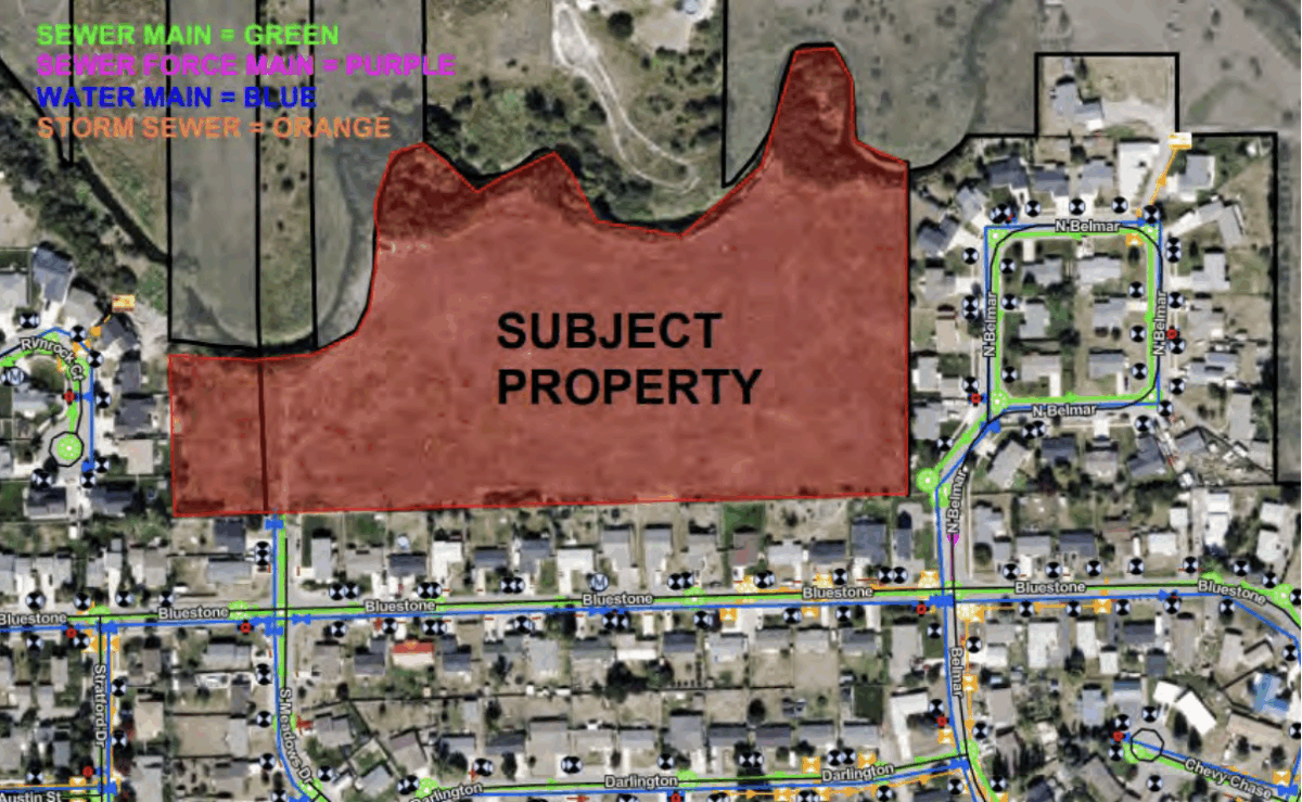 The new proposal, North Meadows Subdivision, will feature 44 townhouse/attached single-family homes on a 12-acre lot near Ashley Creek. To make that possible, the developer requested several variances, including reducing the city’s standard setback of 200 feet from Ashley Creek to 100 feet in some areas due to the plot’s spatial limitations. A minimum 30-foot setback from the slope crest above Ashley Creek is required, according to the geotechnical report for the site.