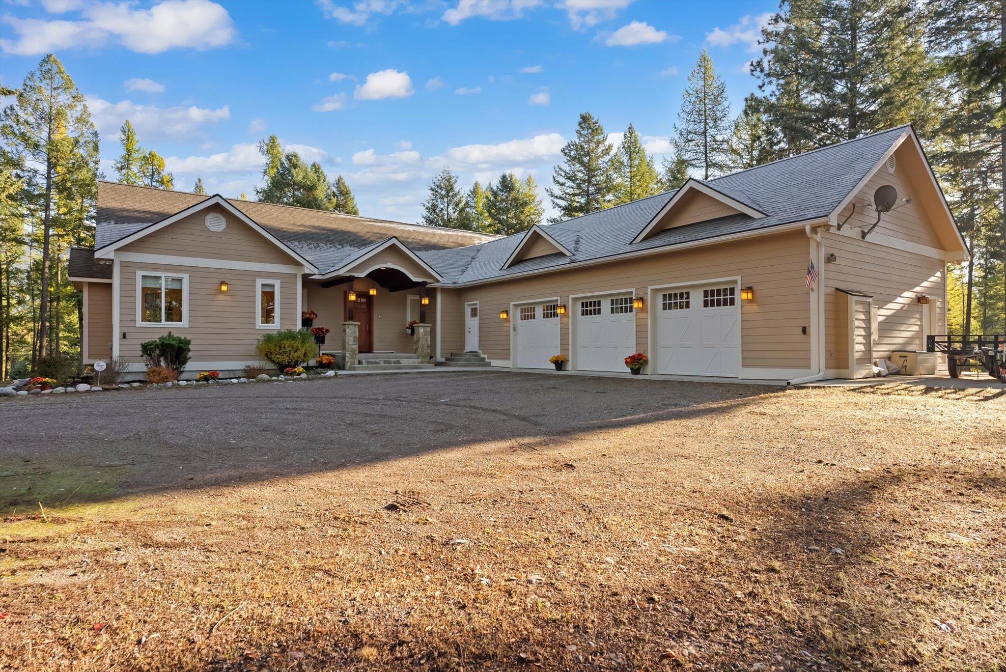 This new custom build is located in a quiet, well-established neighborhood just minutes from Flathead Lake. The thoughtfully designed home features an open-concept kitchen, dining, and living area with vaulted ceilings and large windows. Outside is a covered balcony, mature trees, rock walls and irrigation system. National Parks Realty