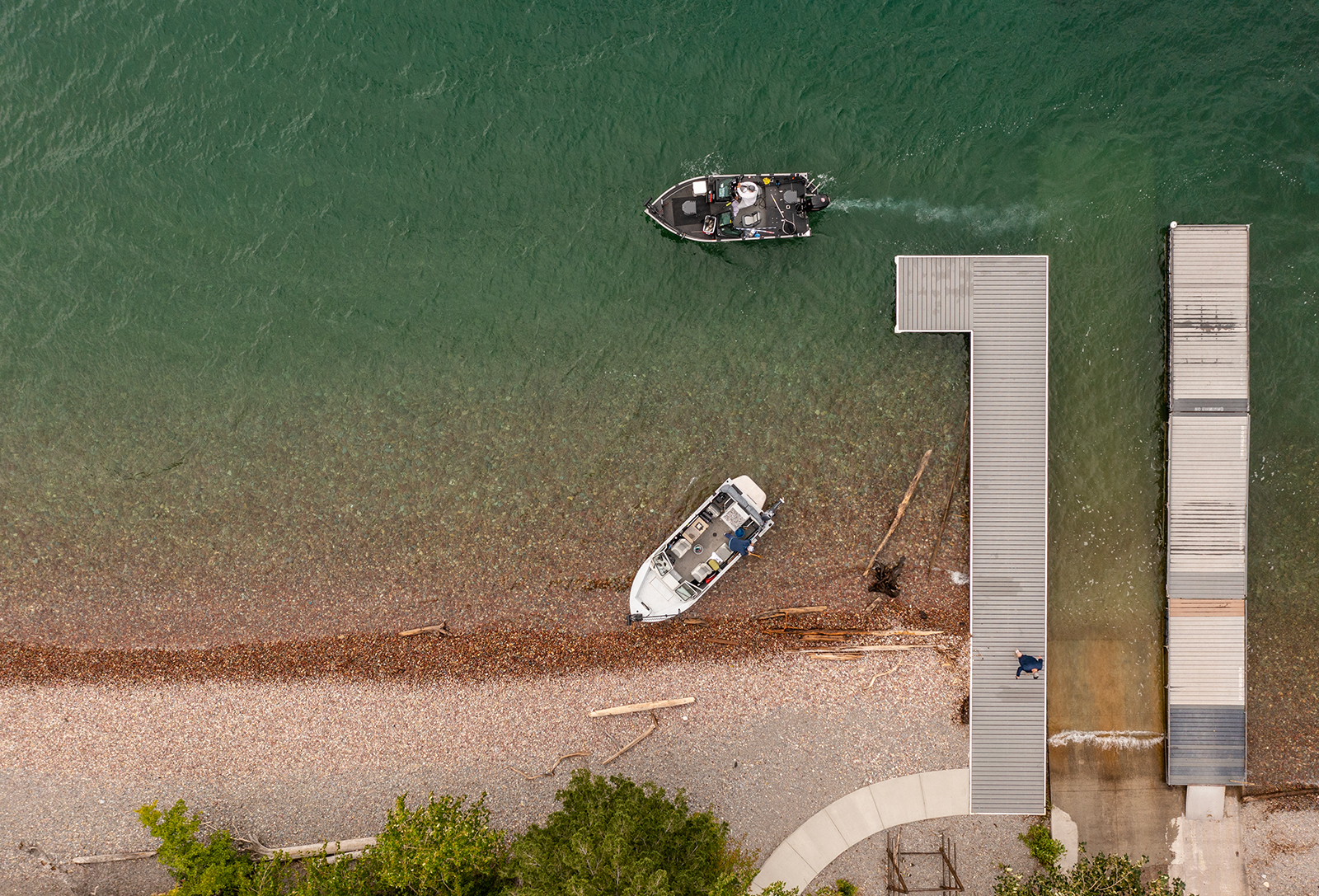On Flathead Lake alone, Lorang has designed nearly two miles of gravel beaches, and the Montana Department of Fish, Wildlife and Parks has employed his designs at Woods Bay Fishing Access Site near Bigfork, which Lorang said absorbs “the most energetic waves in the U.S.,” earning it the nickname “Storm Beach,” as well as at the Yellow Bay Unit of Flathead Lake State Park and Somers Beach State Park. The agency said it plans to protect all its sites on Flathead Lake with dynamic equilibrium beaches.