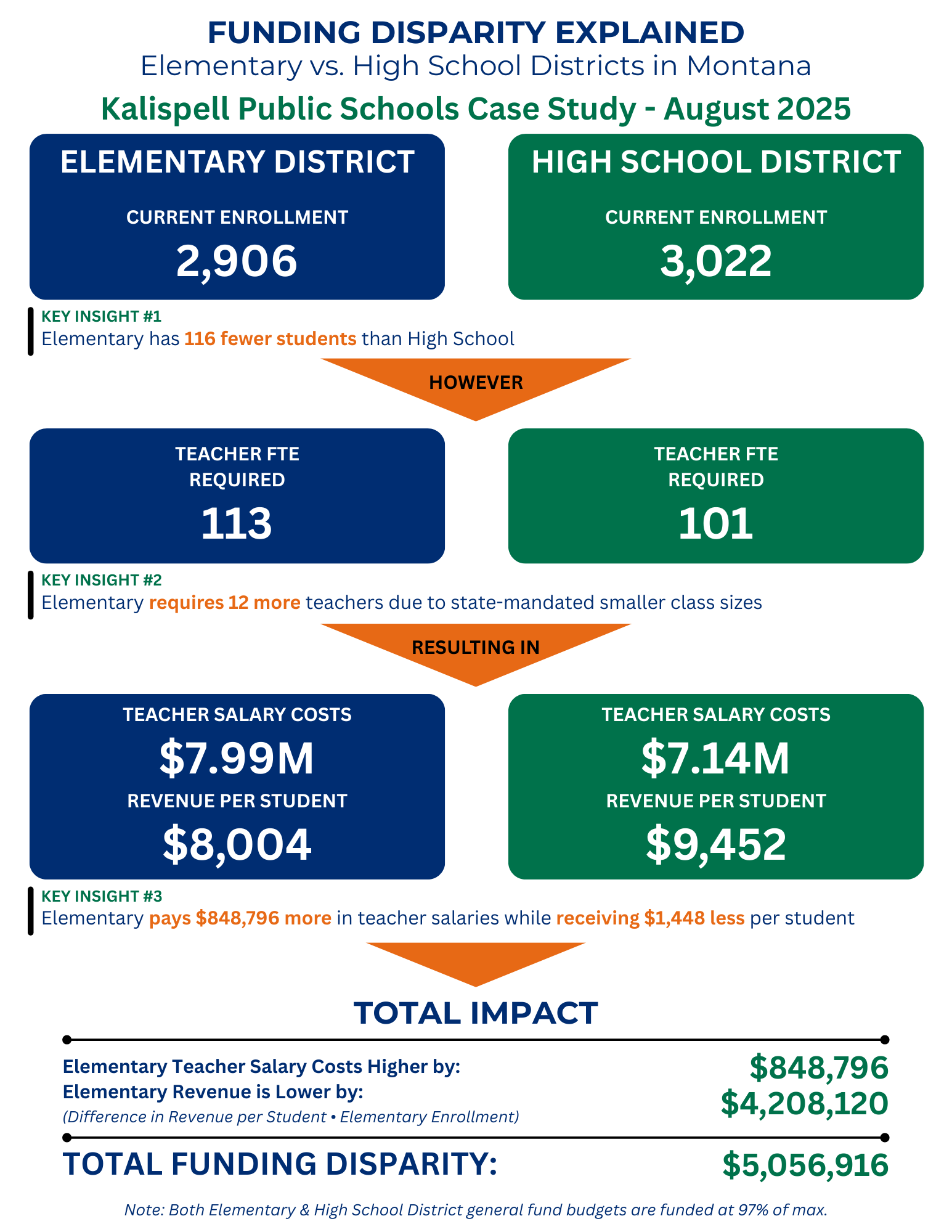 At Kalispell Public Schools, the funding discrepancy between the high school district and elementary district, based on per student revenue, is around $5 million. And Superintendent Matt Jensen said the lesser funding the elementary level receives is compounded by smaller class size caps imposed by the state for kindergarten through fourth grade.