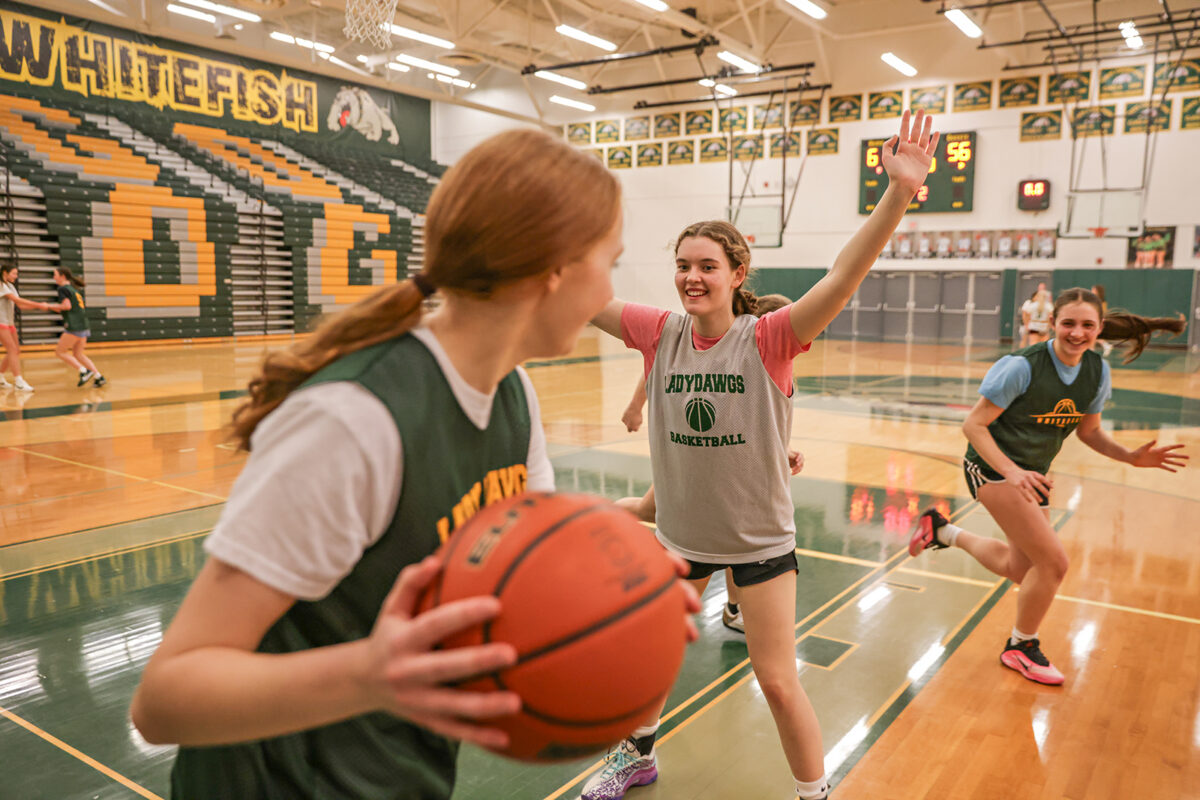 Music blasted from the speakers at Whitefish High School’s gym as its girls basketball players exchanged wide smiles and contagious laughs while the team worked its way through a drill at Monday night’s practice.