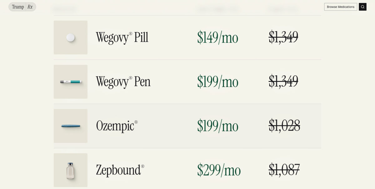 Some of the prominent drugs listed on TrumpRx are fertility medicines and diabetes drugs, known as GLP-1s and popularized for weight loss use, including Ozempic, Wegovy and Zepbound. Those are often not covered through insurance. For those, the TrumpRx discount is palpable — for example, Wegovy pills, which normally have a wholesale price of $1,349, are discounted by 78% to 89%.