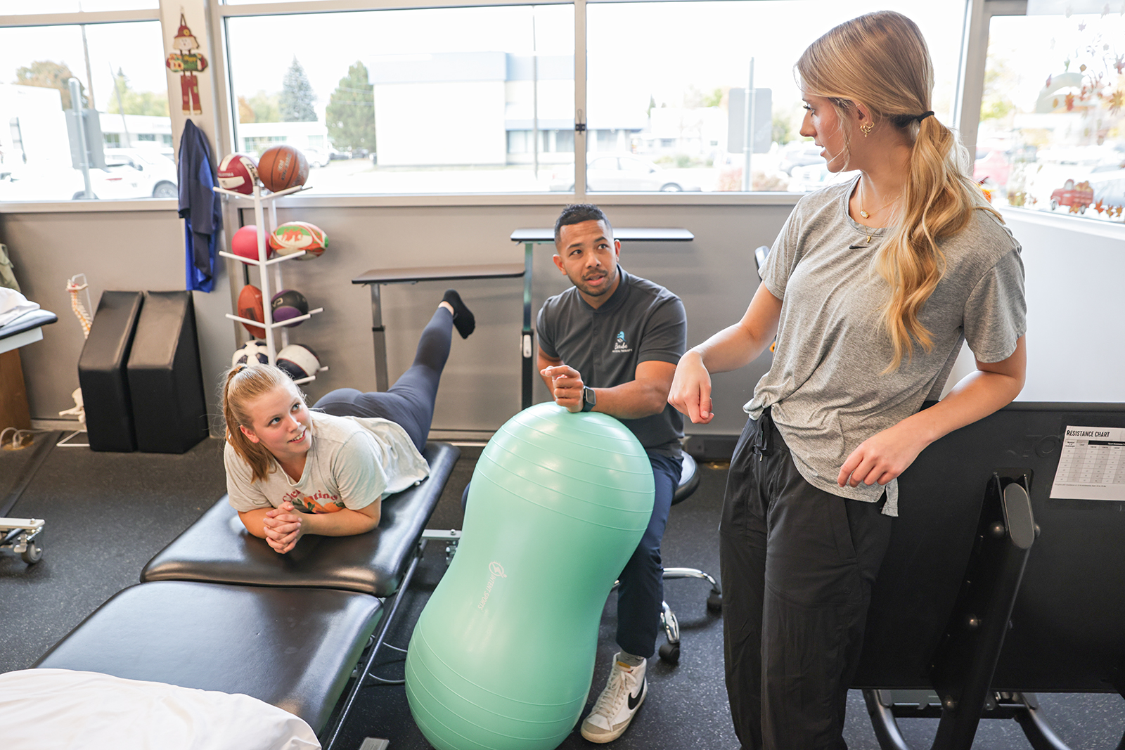 As Kalani McLaughlin, a physical therapist with Berube Physical Therapy, advised Anouk Lee, his patient, about the recovery process for her upcoming ACL surgery, Cassidy Dennison listened and watched.