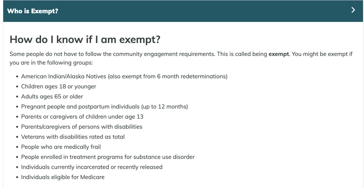 The DPHHS website features a list of people who are exempt from the requirements, including Native Americans, children, parents of young kids, caretakers of people with disabilities, people who are “medically frail,” and others.