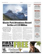 The year-end totals show 1.07 mil- lion people entered the park through the West Entrance, a 6.6 percent increase over 2013. There were 484,500 people at Saint Mary’s, a 2.9 percent decrease over last year. Many Glacier attracted the third most visitors, 300,767, a 9.4 percent in- crease over 2013.