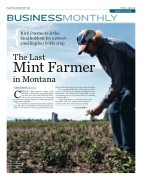 Glacier National Park’s west border frames the fields. The spearmint field next to the Passmore’s farm- house is well on its way to being a hardy yield come mid-August. The mint smell is impossible to miss, and plucking a deep green leaf releases a refreshing