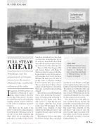 Just after the turn of the 20th cen- tury, steamboats became obsolete and eventually, car travel replaced rail travel in popularity. Look at the boats on the lake today—sleek, beautiful, all fun and nesse—and you’d be none the wiser that their legacy traces back to the heavy-duty, steam-powered predeces- sors that made it possible to settle the Flathead Valley.