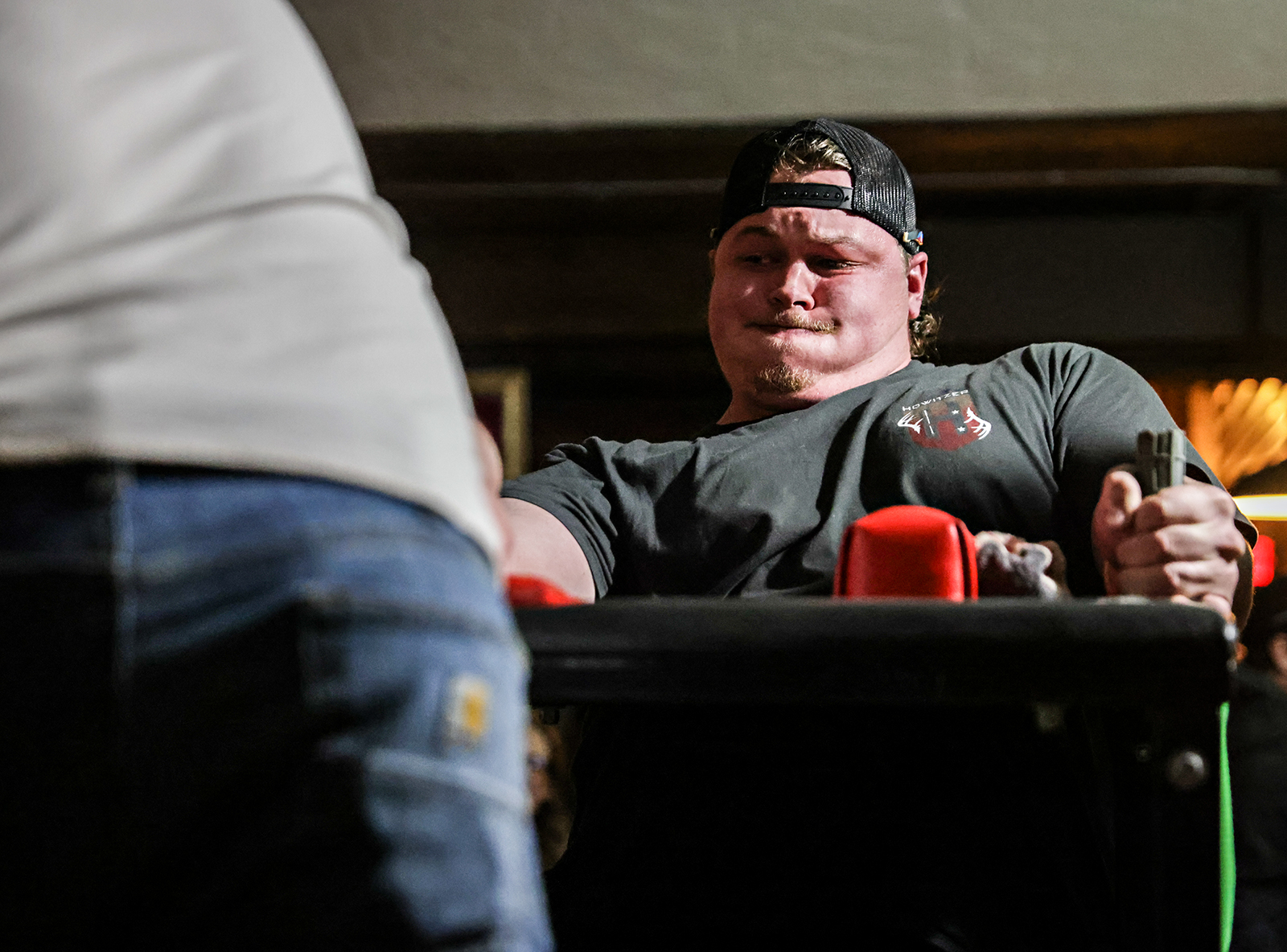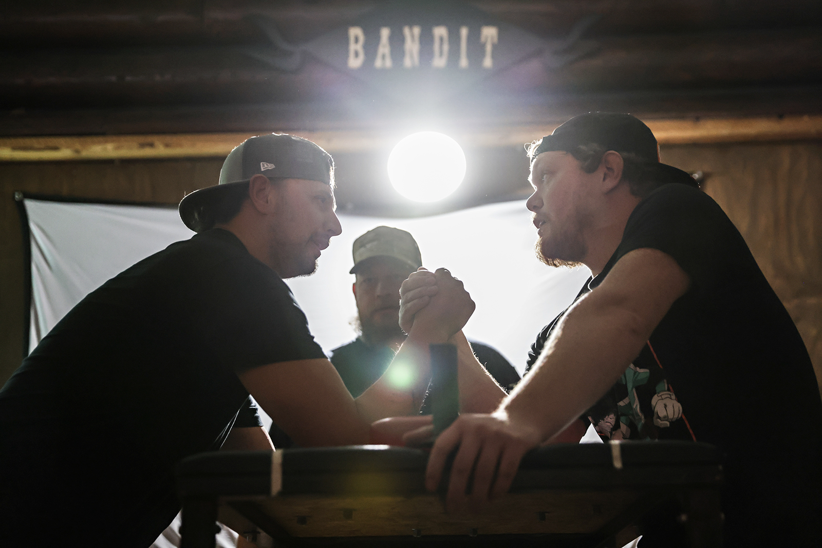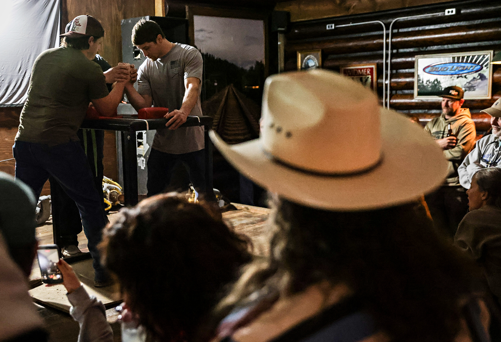 Arm wrestlers at Paul Bunyan Bar and Grill in Martin City on Feb. 14, 2026. Hunter D’Antuono | Flathead Beacon