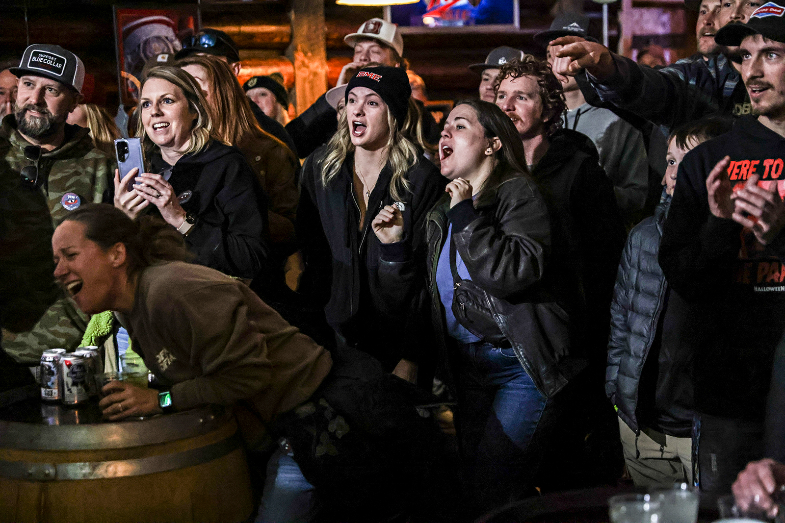 The crowd cheers on arm wrestlers at Paul Bunyan Bar and Grill in Martin City on Feb. 14, 2026. Hunter D’Antuono | Flathead Beacon