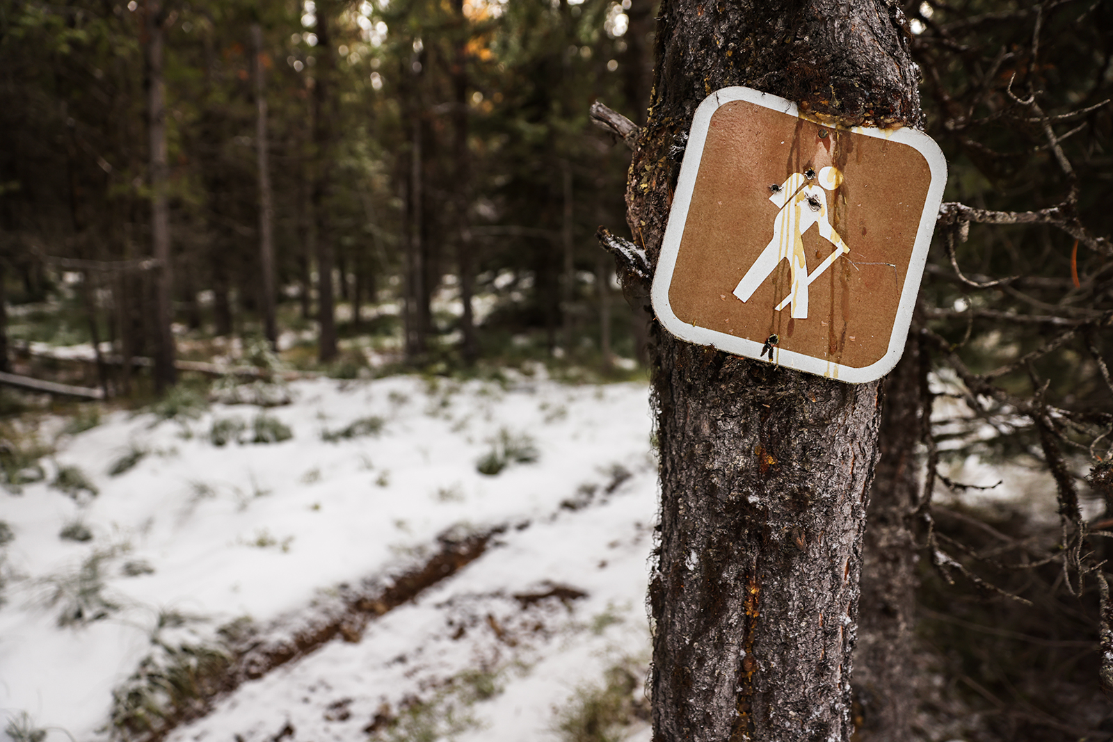 Trail signage along the Alpine 7 trail in the Swan Range on Nov. 23, 2025. Hunter D’Antuono | Flathead Beacon