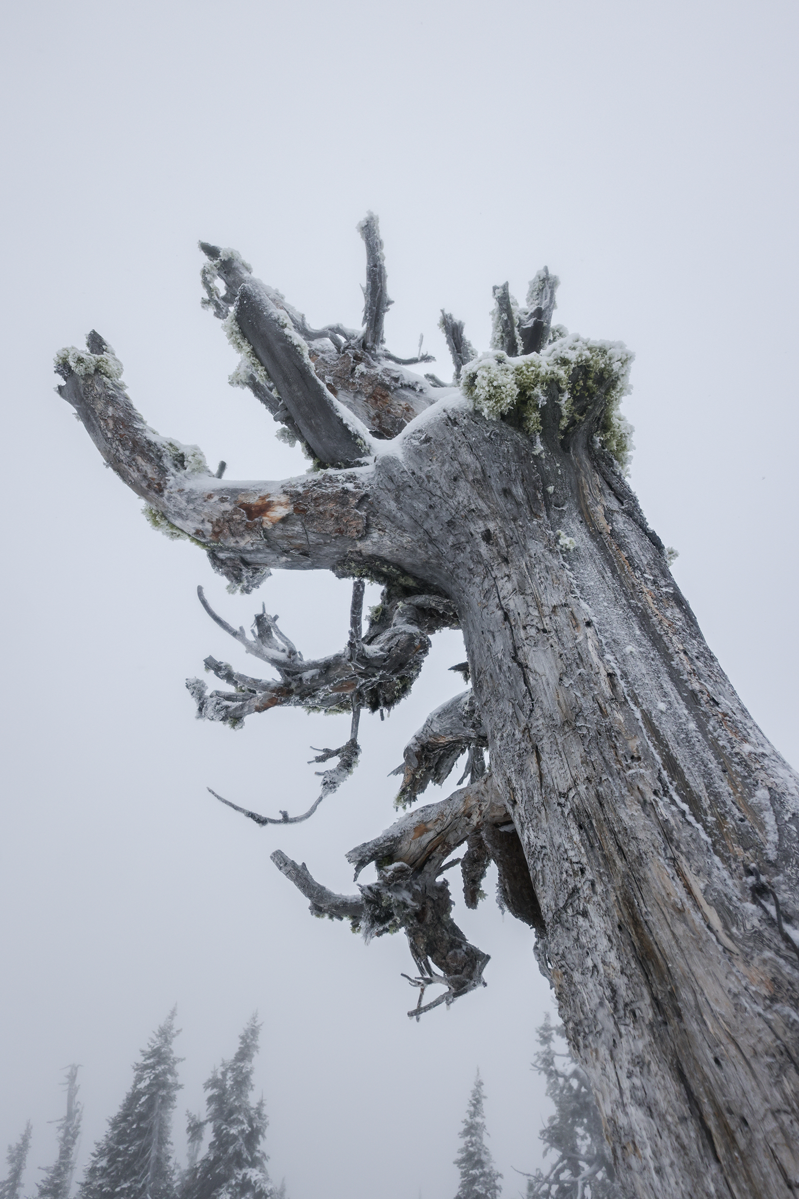 Rime-coated tree on Doris Mountain in the Swan Range on Nov. 23, 2025. Hunter D’Antuono | Flathead Beacon