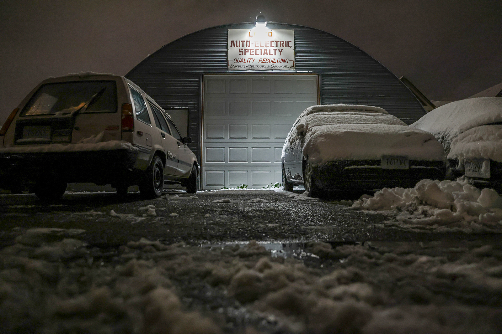 Auto shop after a snowfall in Kalispell on Nov. 24, 2025. Hunter D’Antuono | Flathead Beacon