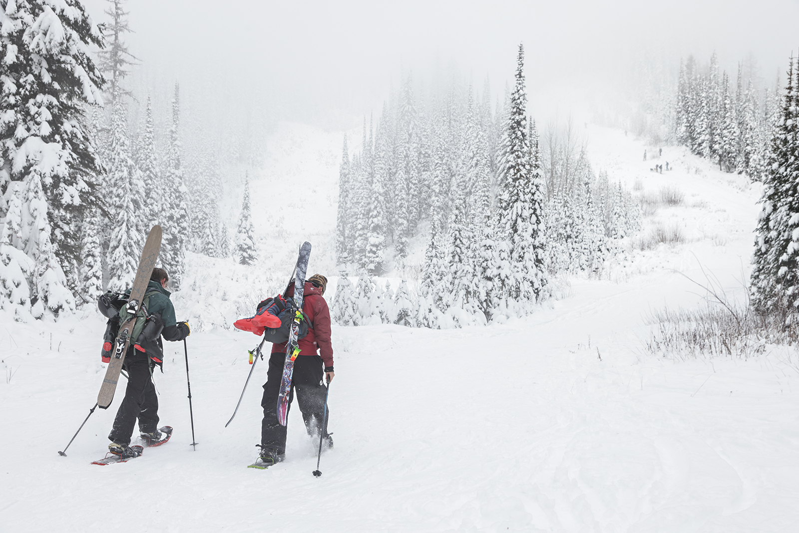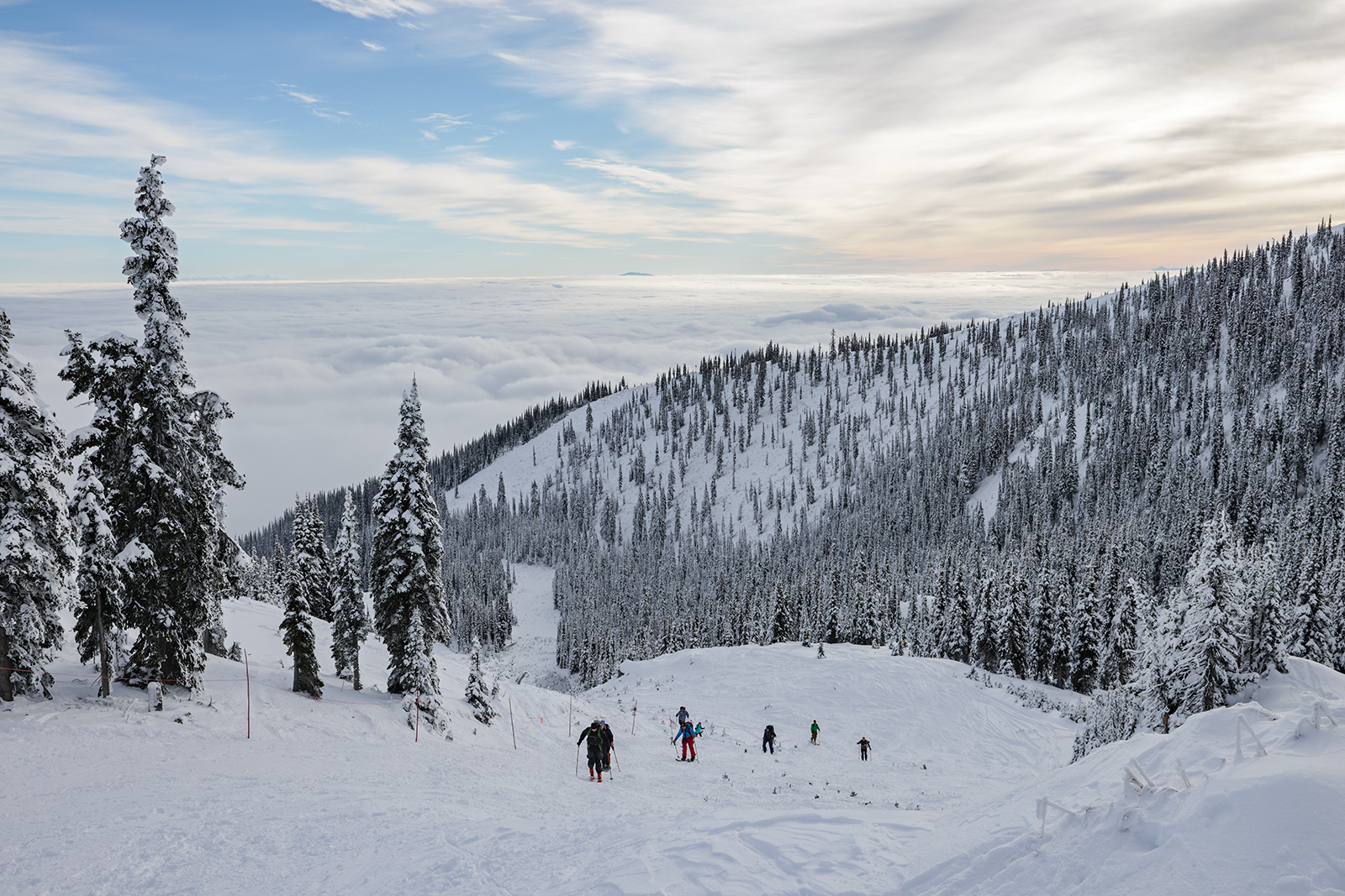 Skiers climb Big Mountain at Whitefish Mountain Resort on Nov. 30, 2025. Hunter D’Antuono | Flathead Beacon