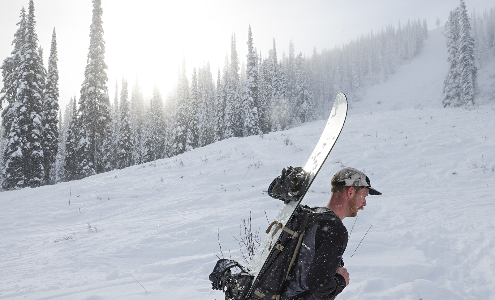 A snowboarder climbs Big Mountain at Whitefish Mountain Resort on Nov. 30, 2025. Hunter D’Antuono | Flathead Beacon