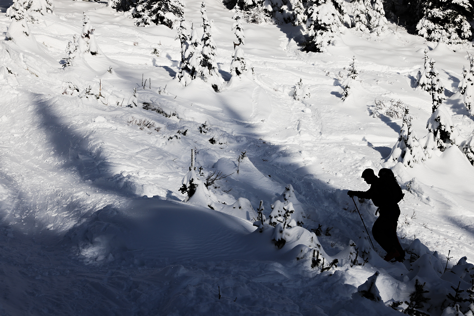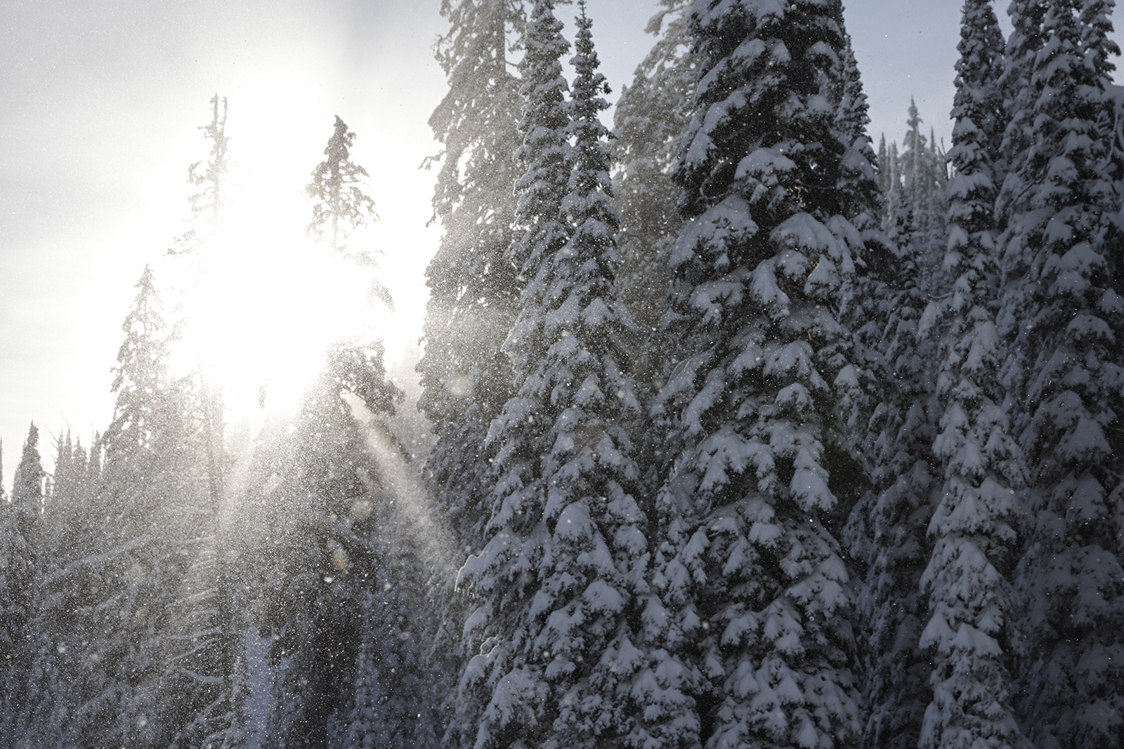 Sunlight filters through trees on Big Mountain on Nov. 30, 2025. Hunter D’Antuono | Flathead Beacon