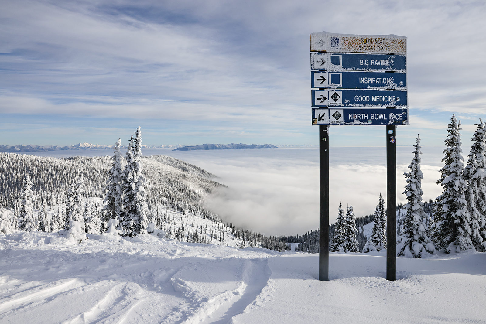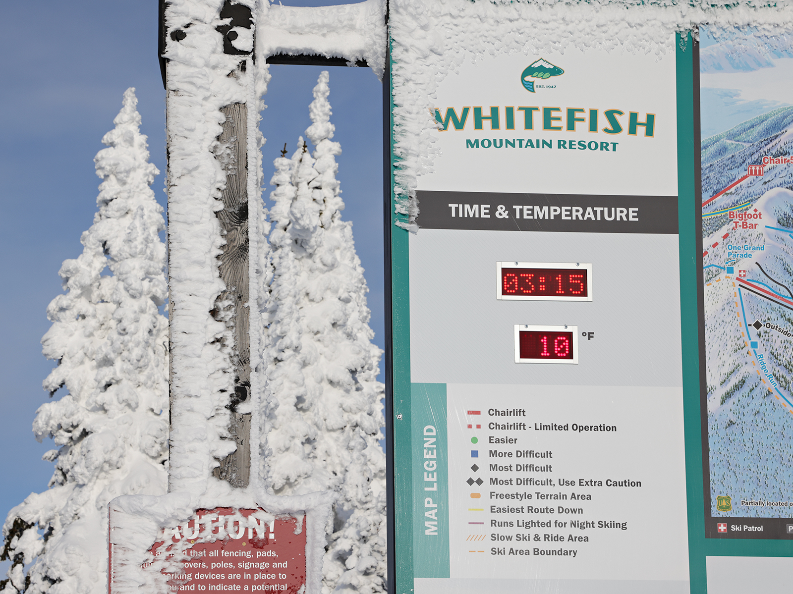Informational board at at the summit of Whitefish Mountain Resort on Nov. 30, 2025. Hunter D’Antuono | Flathead Beacon