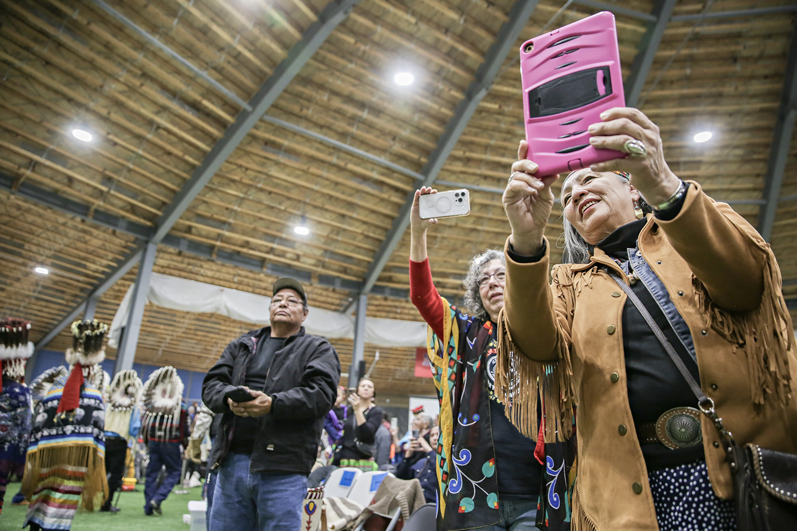 Attendees snap photos during a ceremony for Gladstone in Browning on March 26, 2024. Hunter D’Antuono | Flathead Beacon