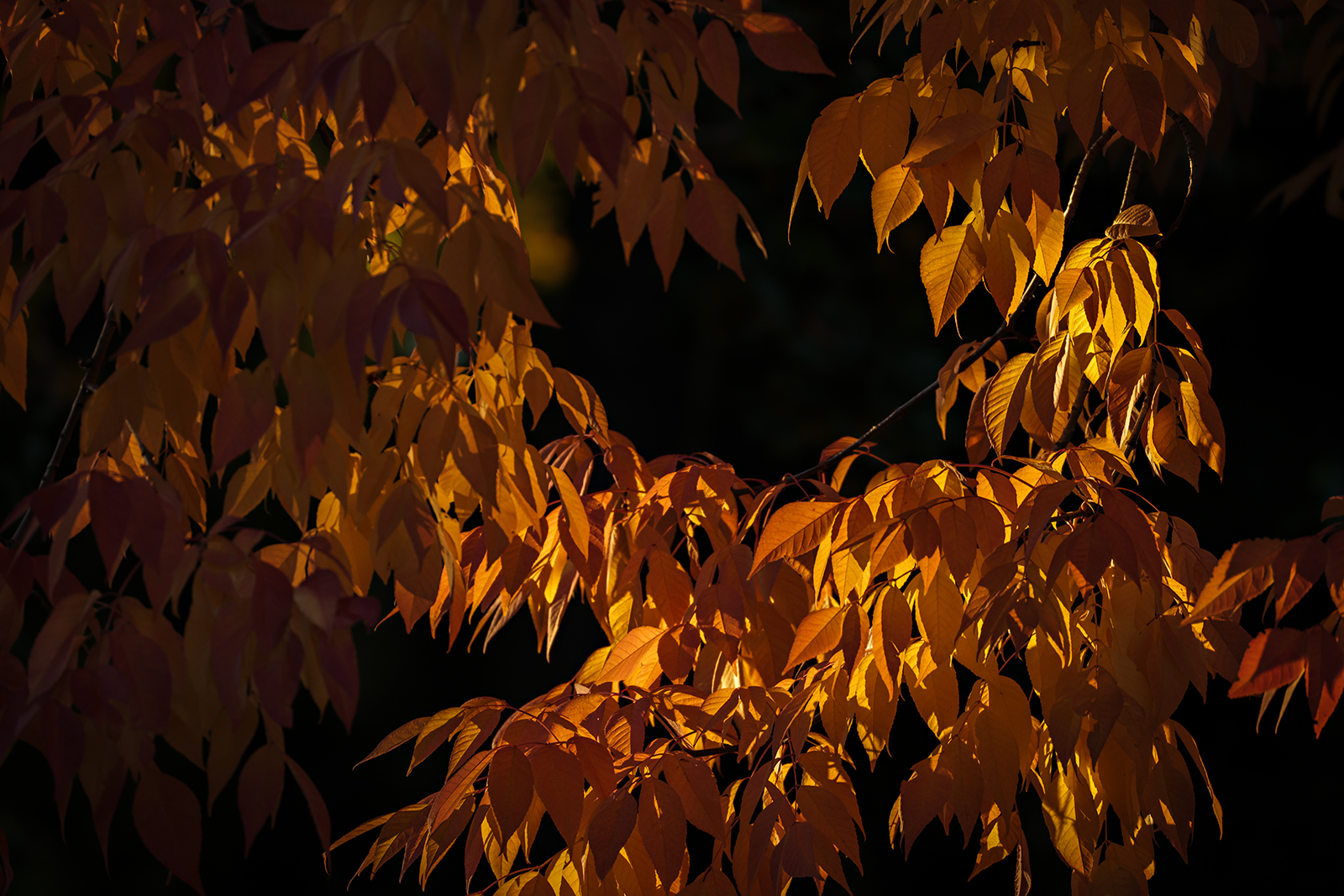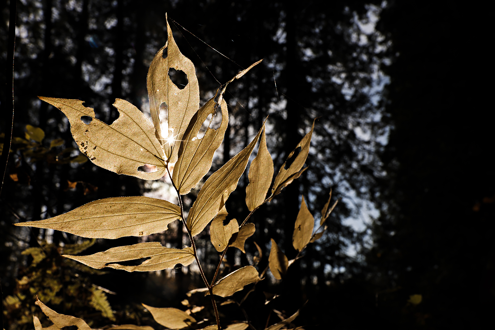 Fallen maple leaves in morning light in Woodland Park in Kalispell on Oct. 9, 2025. Hunter D’Antuono | Flathead Beacon