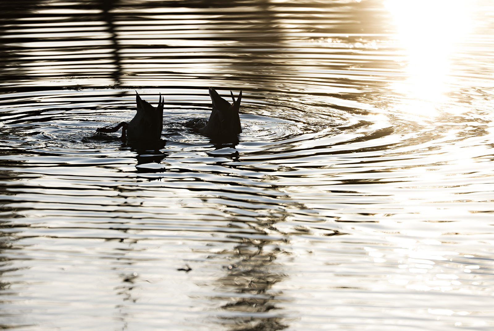 Ducks feed at sunrise in the Woodland Park lagoon in Kalispell on Oct. 9, 2025. Hunter D’Antuono | Flathead Beacon