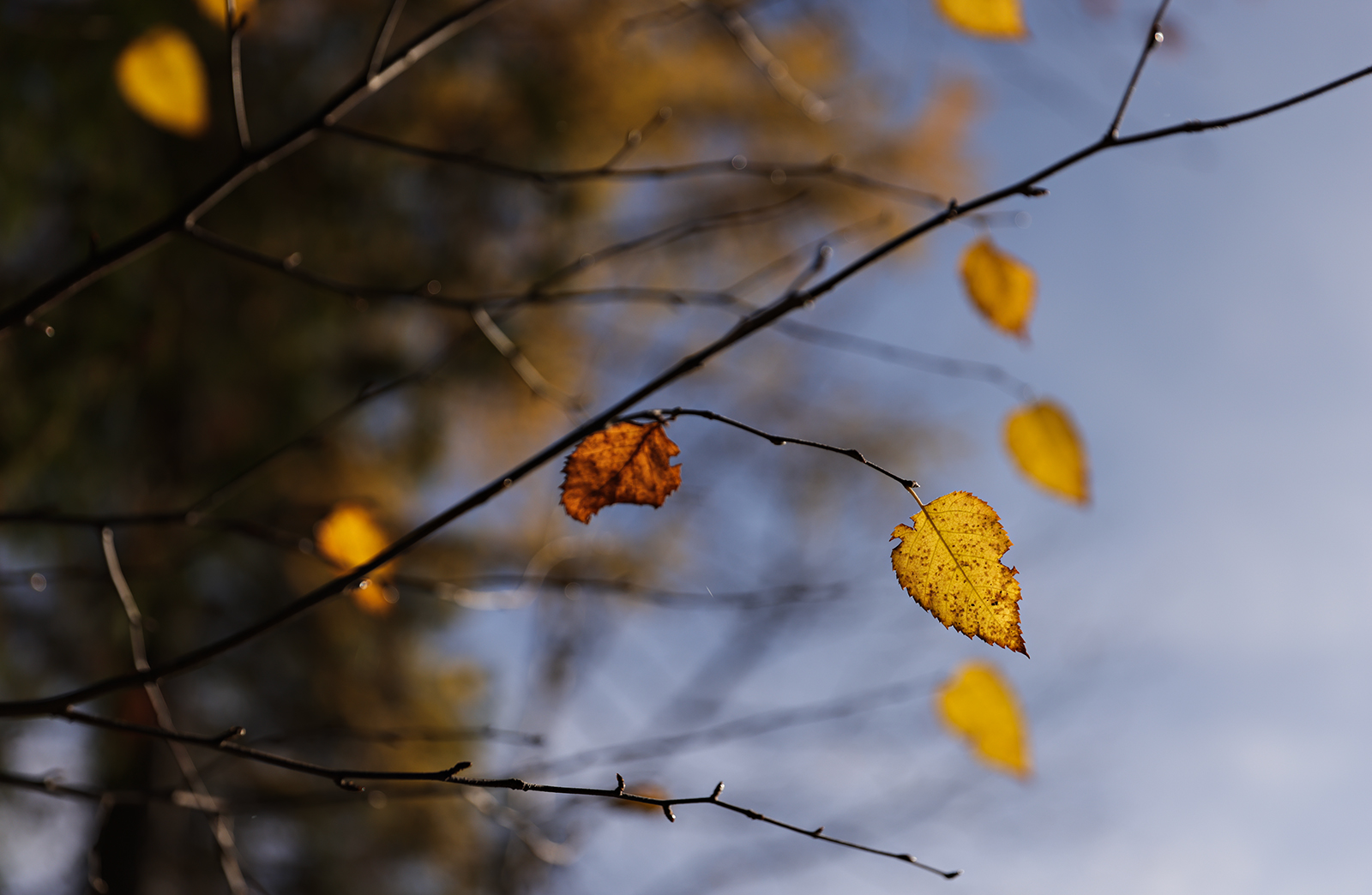 A pair of autumnal leaves in Kalispell on Oct. 9, 2025. Hunter D’Antuono | Flathead Beacon