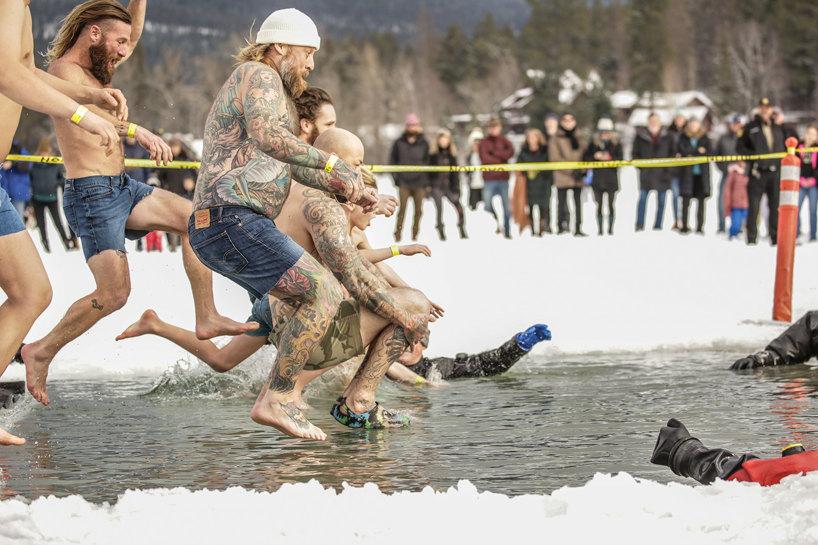 The Whitefish Winter Carnival Penguin Plunge at Whitefish Lake on Feb. 5, 2022. Photo by Jessie Mazur of Picture Montana