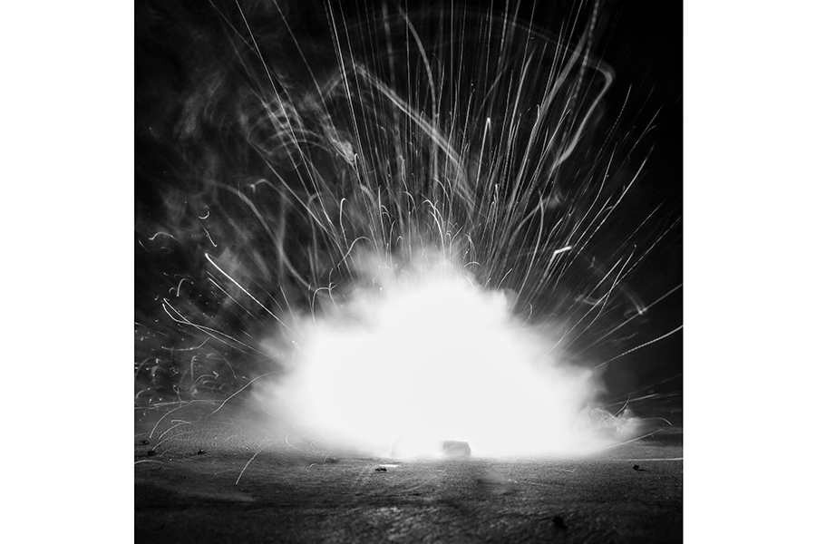 Three broken plates, eight shattered light bulbs and a dozen or so exploded firecrackers later, I came out with this trio of images from an evening of experimentation with high-speed photography techniques. A sound-activated shutter trigger connected to a pair of wireless flashes made capturing the precise moment of impact possible. All three moments were captured well after sundown in near-total darkness to facilitate long exposures and ensure no ambient sources of light would create a double exposure-effect. A long exposure allowed time to press the shutter, let my eyes adjust to the darkness, and move into position to drop or detonate the subjects on exact, prefocused spots on the ground. The flashes fired when the sound-activated shutter trigger “heard” the impact. While the camera’s shutter remained open for as long as 10 seconds, the exposures were effectively only as long as the exceedingly brief burst of light — recording a sliver of time tiny enough to appreciate the finer details of disintegration.