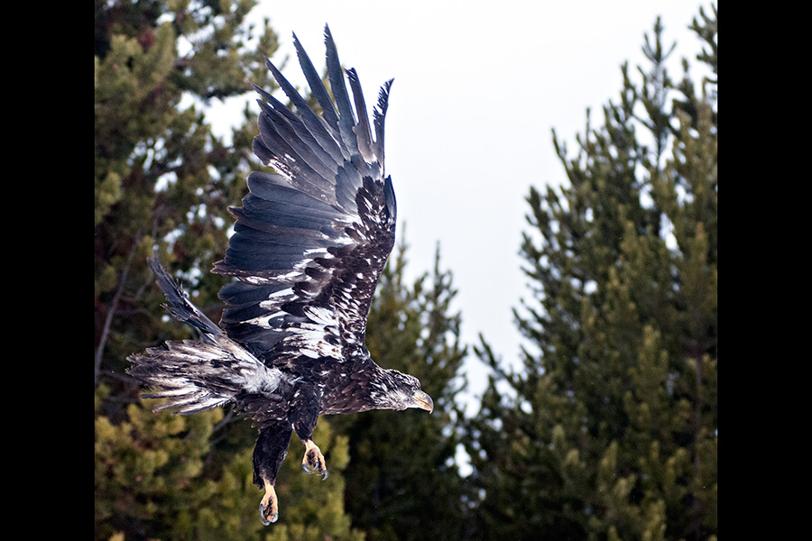 A young female bald eagle is released near Marion on Feb. 10, 2015. George Brennan found the injured bird on the side of U.S. Highway 2 near Marion after it was hit by a semi truck last Thursday. The eagle, which didn't suffer any broken bones, was rehabilitated by Montana Wild Wings Recovery Center before being released. Greg Lindstrom | Flathead Beacon