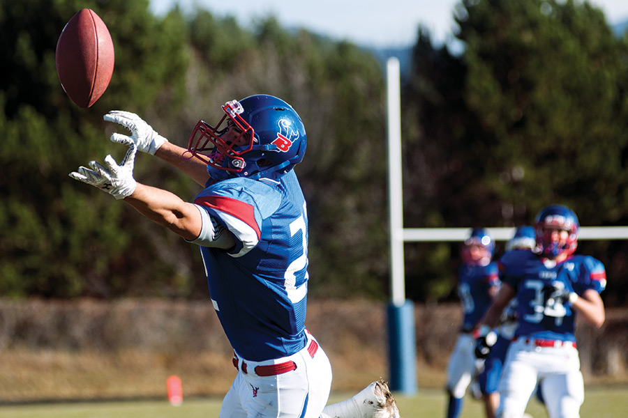 Jonathan Landon can’t make a fingertip grab. Bigfork beat Malta 41-0 in the Class B quarterfinal game at Bigfork High School on Nov. 8, 2014. Visit FlatheadBeacon.com for more photos. Greg Lindstrom | Flathead Beacon