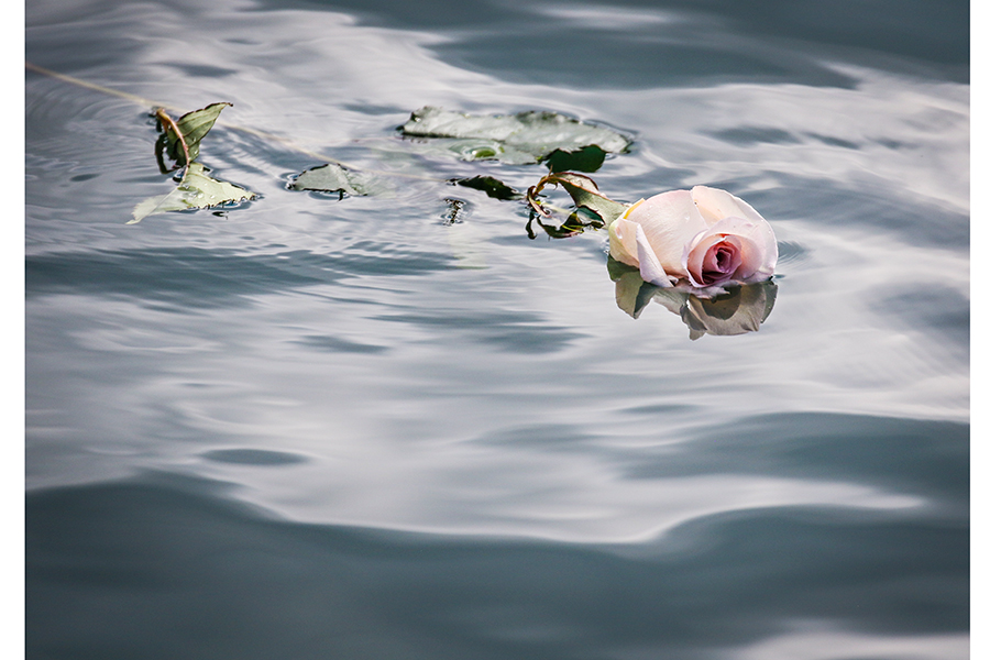 A pink rose drifts across the Bigfork Bay after a ceremony for breast cancer survivors and patients at the Montana Dragon Boat Festival in Bigfork on Sept. 7, 2019. Hunter D’Antuono | Flathead Beacon