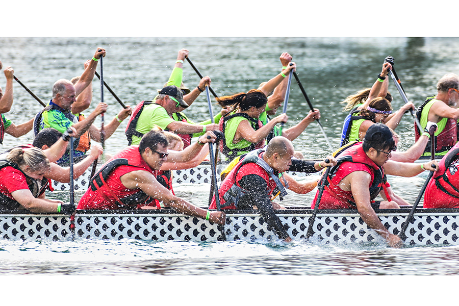 Twenty-one teams composed of twenty paddlers each from across Montana and Alberta produced wakes across Bigfork Bay on September 7 and 8, 2019 during the annual Montana Dragon Boat Festival. The new race location in Bigfork offered protection from the wind and smooth waters for racers.