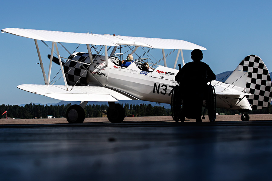 Residents of The Springs at Whitefish fly in a 1942 Boeing Stearman with Ageless Aviation Dreams Foundation out of the Glacier Jet Center. Ageless Aviation Dreams Foundation, a non-profit organization dedicated to giving back to those who have given, treated residents to a flight around Whitefish Lake and Big Mountain. “We just want to make a real difference in their lives,” said Sherry Mayeaux, director of community relations with The Springs.