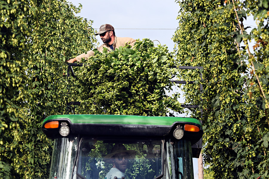 The crew at Glacier Hops Ranch northwest of Kalispell harvests and processes their crop, providing fresh hop cones for local breweries. Read more about the Glacier Hops Ranch