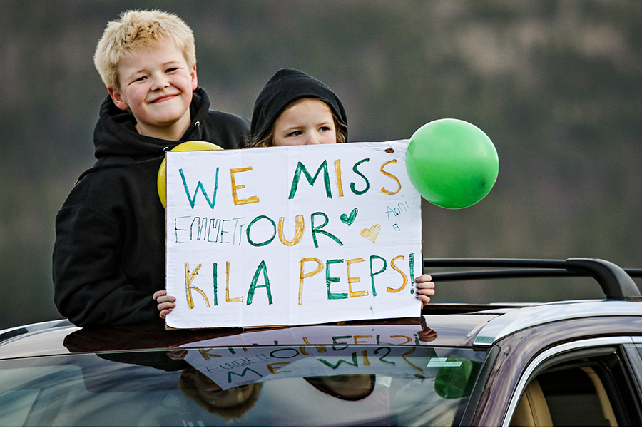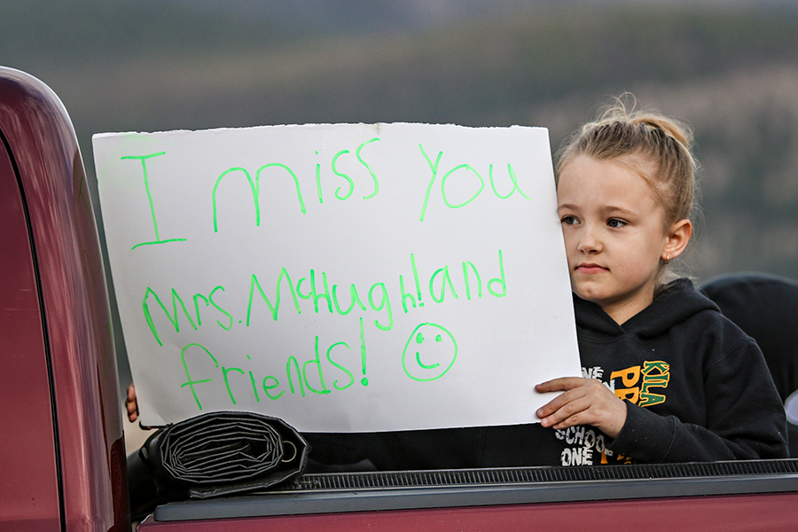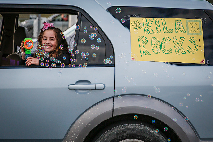 Kila School students, teachers and other community residents gathered for a physically-distant car parade through town on April 10, 2020, as a way to connect during the COVID-19 outbreak.