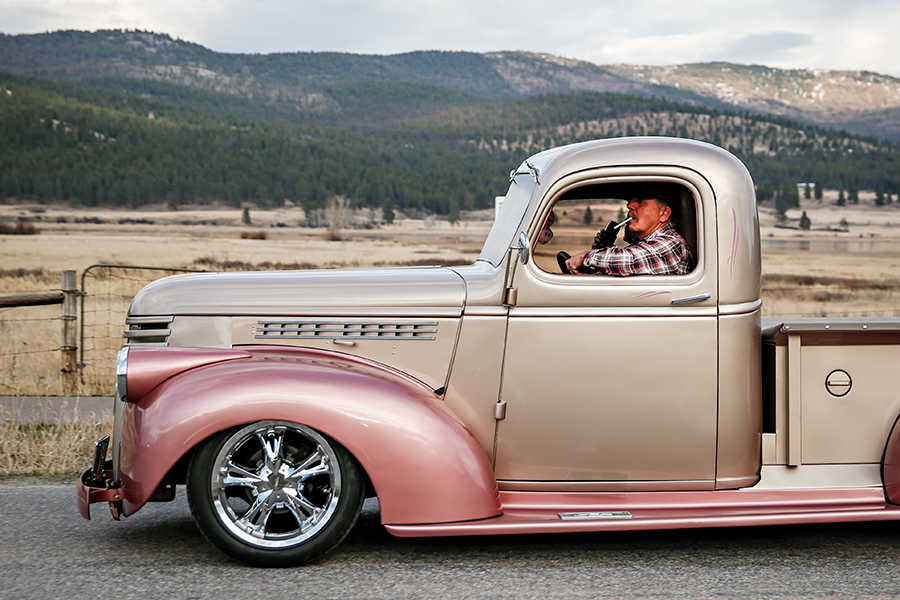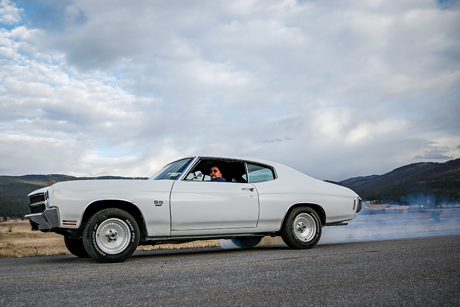 A muscle car lays some rubber on Kila Road on April 10, 2020. Kila School students, teachers and other community residents gathered for a physically-distant car parade through town on April 10, 2020, as a way to connect during the COVID-19 outbreak. Hunter D’Antuono | Flathead Beacon